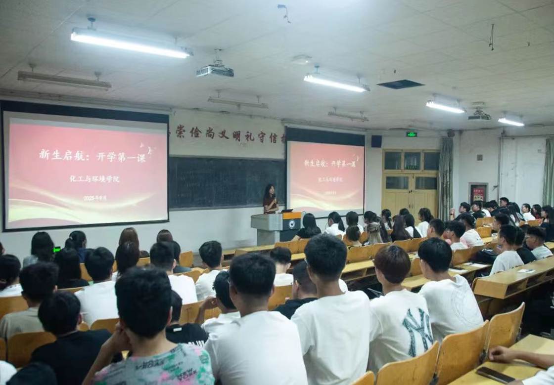 “雁行计划”的有序推进,离不开思想与专业的双重引领。“开学第一课”主题班会作为党建融合“雁行计划”、学科特色的核心载体,以“头雁领学、群雁互学”形式展开:辅导员用党史案例解读“绿色发展”“生态文明”等国家战略,分享化工环保科研故事:如废水处理技术突破、低碳化工研发历程,带领学生探讨“青年化工环保人如何担使命”、“党的领导与绿色发展的关系”。这堂“开学课”,为“雁行计划”筑牢思想与专业双根基,让每一只“雁”都清晰:紧跟“红色头雁”、深耕化学化工专业,才能在绿色发展路上飞得更稳、更远。