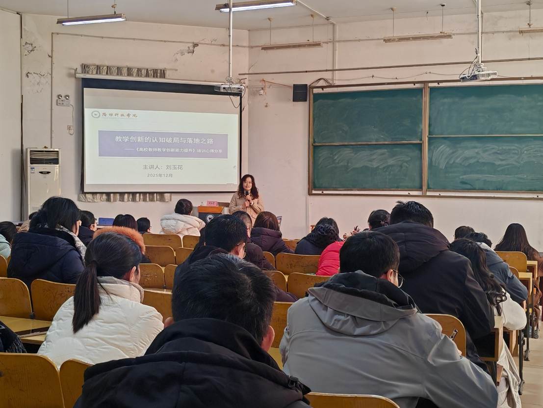 12月3日,suncitygroup太阳集团组织开展“教学创新的认知破局与落地之路”主题讲座,本次讲座由学院教师刘玉花主讲,副院长刘芳芳主持,全体专任教师参加。